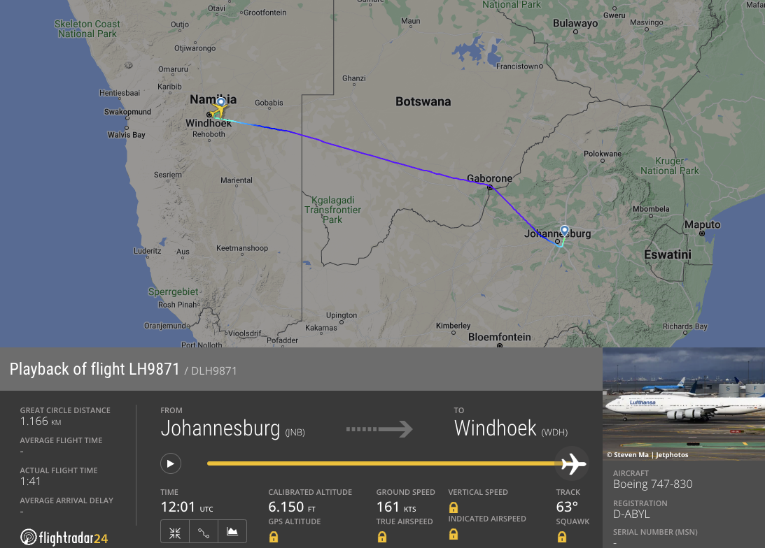 Diese Vorgehensweise ermöglicht es Lufthansa, den Flugplan weitestgehend stabil zu halten und Unannehmlichkeiten für ihre Passagiere zu minimieren. Die Flugzeit zwischen Johannesburg und Windhoek beträgt etwa 1,5 bis 2 Stunden pro Strecke. Damit werden die Jumbos mehrere Stunden ohne Passagiere in der Luft sein. Eine kostenintensive, aber notwendige Maßnahme in einer außergewöhnlichen Situation.