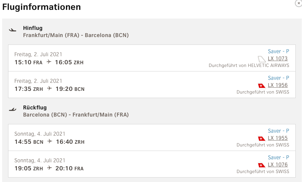 Ein Hin- und Rückflug über das Wochenende von Frankfurt nach Barcelona mit Swiss in der Business Class kostet z.B. 471 Euro und bringt 7.500 Statusmeilen, womit der Frequent Traveller Status mehr als gesichert wäre.