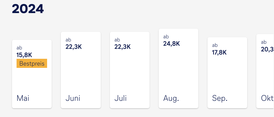 Hier muss man etwas mit den Aufenthaltsdaten herumspielen, dann finden man Tarife ab umgerechnet 1.333€.