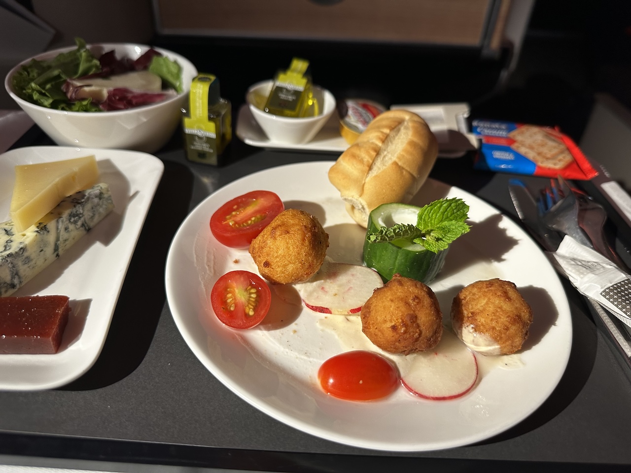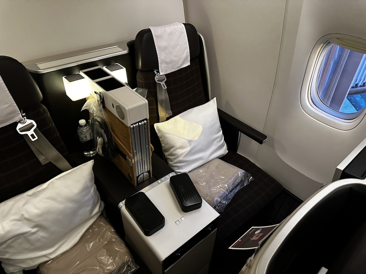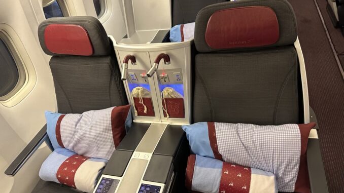 Der Sitz ist insbesondere von den Schlafeigenschaften her sehr gut. Auch den Service in der Business Class bei Austrian Airlines kann man als sehr hochwertig bezeichnen. So fliegt auf allen Langstrecken ein Koch mit, welcher das Essen an Bord zubereitet und anrichtet.