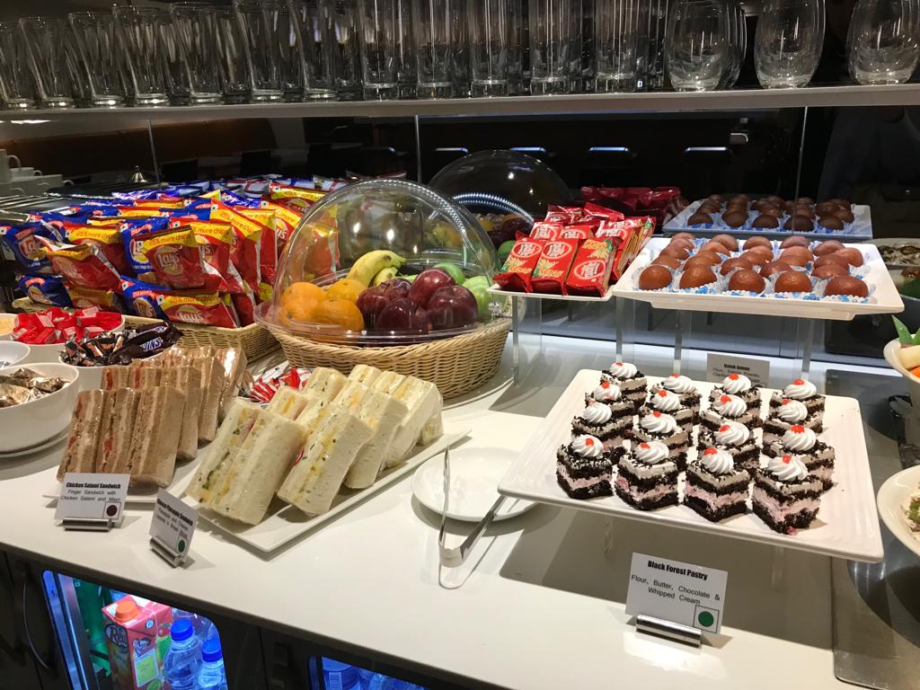 Die Lufthansa Lounge Delhi hat zwei Buffets in der Lounge, was wohl an der erst kürzlich erfolgten Zusammenlegung der Senator und Business Lounge liegt. An beiden Buffets wird das selbe Essen angeboten. Die Auswahl an Salaten, Sandwiches, Kuchen, warmen Speisen und Obst lässt sich wohl am besten als deutsch- indische- internationale Küche bezeichnen. Zumindest war es eine recht wilde Mischung.
