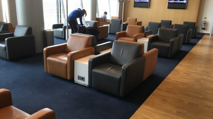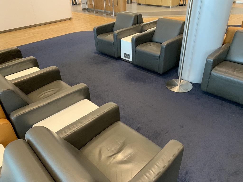 Da die Sessel in der Lounge generell nicht übertrieben eng gestellt sind, habe ich mich hier auch zur Stoßzeit mit recht vielen Passagieren immer noch sicher und wohl gefühlt. Die Bilder aus der Lounge habe ich übrigens nach dem Abflug der USA und Kanada Flüge aufgenommen, was sie recht zügig geleert hat.