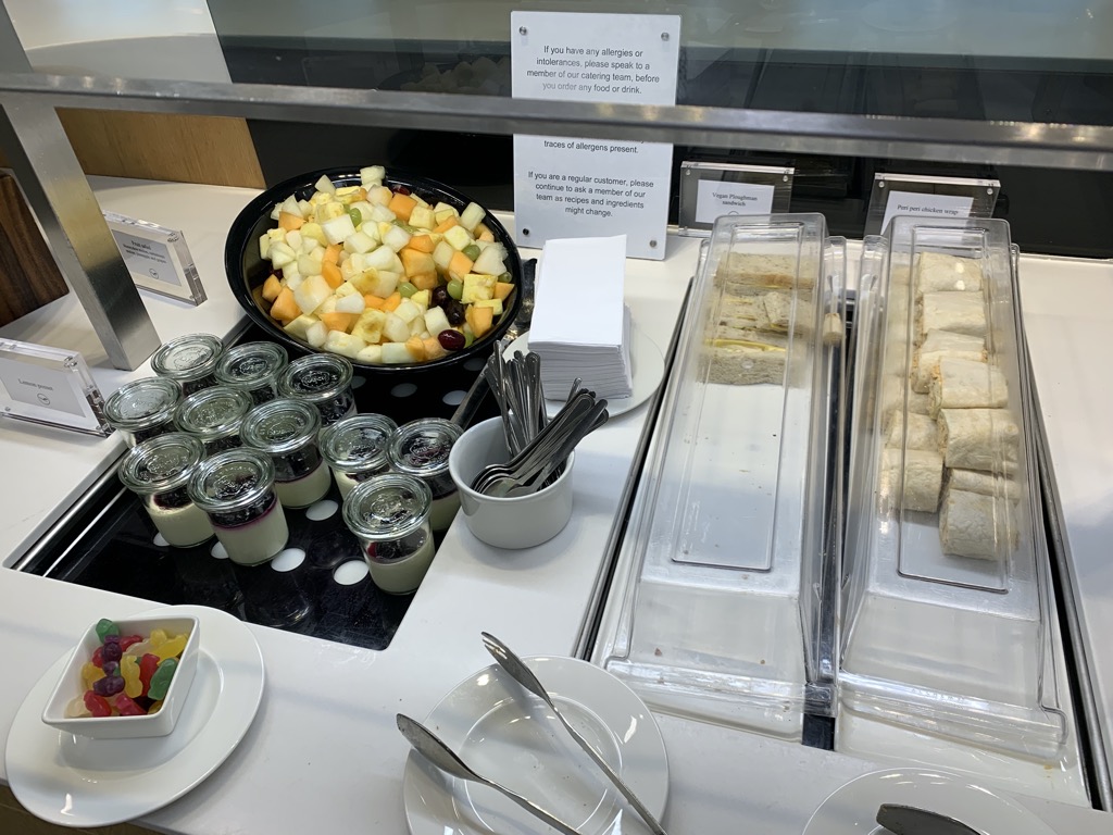 Was in Zeiten von Corona fast wie eine Sensation daherkommt ist die Tatsache, dass Lufthansa in der Lounge in London Heathrow wieder das volle Buffet anbietet. So gibt es wieder vier warme Gerichte, Salate, Sandwiches, Kuchen und einiges anderes.