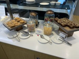 Hier hat man nun wieder das komplette Angebot in der Lounge aufgefahren und ich muss tatsächlich sagen, dass ich hiervon sehr angenehm überrascht war. Die Erwartungshaltung hat sich in den letzten 18 Monaten massiv nach unten geschraubt und man freut sich schon fast wie ein kleines Kind, wenn man ein wenig das Reiseerlebnis von vor der Pandemie hat.