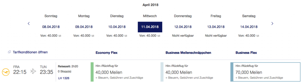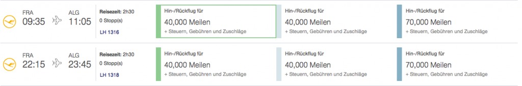 Nach Tunis und Algier ist die Verfügbarkeit als Meilenschnäppchen sehr gut und quasi täglich vorhanden.