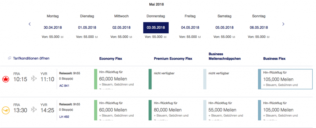 Überraschenderweise ist Vancouver an fast jedem Tag als Meilenschnäppchen verfügbar. Besonders im Mai ein wirklich tolles Ziel!