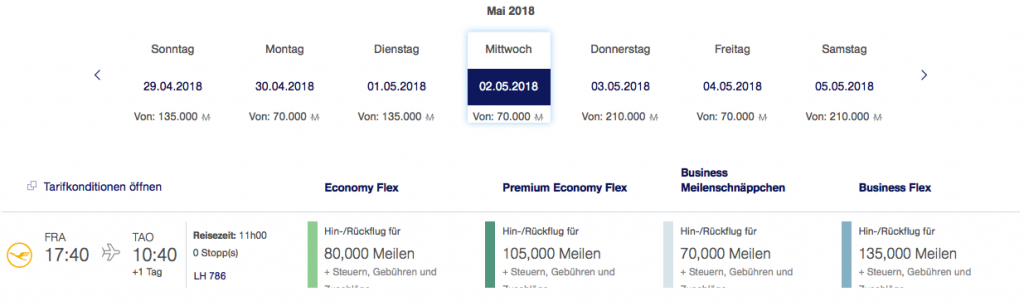 Qingdao wird nur drei mal die Woche angeflogen von Lufthansa. Im Mai sind auch quasi alle Flugdaten verfügbar. Im April leider nur vereinzelte Tage.