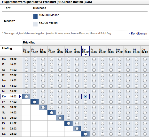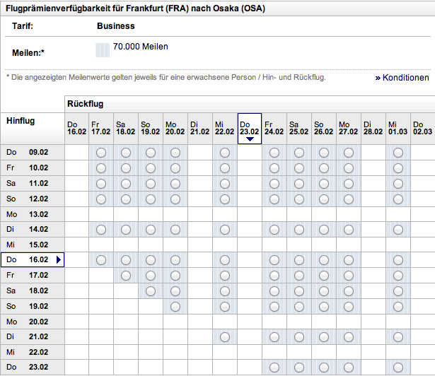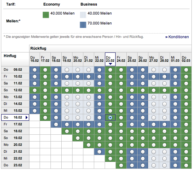 Ihr müsst den Rückflug immer spätestens am letzten Tag des Reisezeitraums antreten. Bitte beachtet auch, dass Miles & More Meilenschnäppchen nicht umbuchbar oder stornierbar sind.