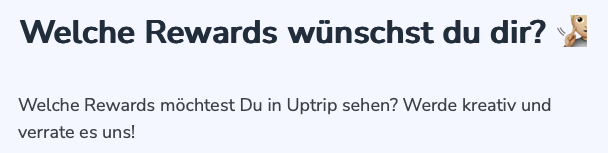 Übrigens: Falls Ihr eine bestimmte Prämie vermissen solltet, bittet Euch Uptrip aktiv um Feedback über die App oder den Link in der letzten Mail: