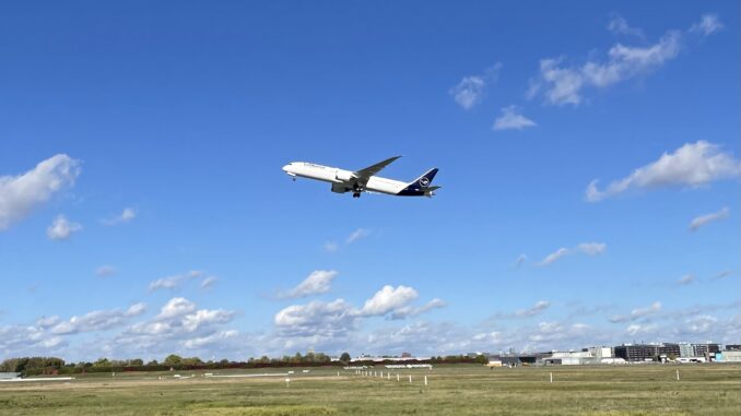Der erste Boeing 787 Dreamliner beim Start in Bremen. Foto: Serbastian