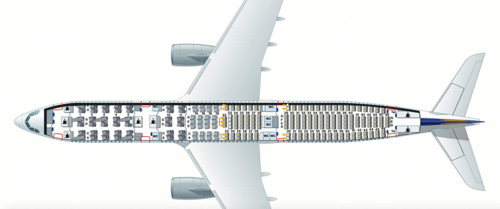 Der eingesetzte Lufthansa Airbus A330-300 verfügt über 42 Business Class Sitze, 28 Premium Economy Class Sitze und 185 Economy Class Sitze.