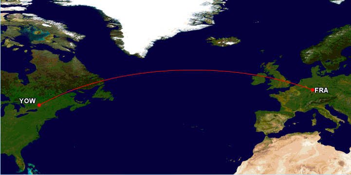 Mit einer Distanz von nur 3.729 Meilen und Flugzeiten von knapp über sieben Stunden laut Flugplan ist dies einer der kürzesten Lufthansa Flüge über dem Nordatlantik. Gerade im Winter bei starken Jetsreams wird der Flug von Ottawa nach Frankfurt vermutlich recht kurz sein und an der sechs Stunden Marke kratzen.