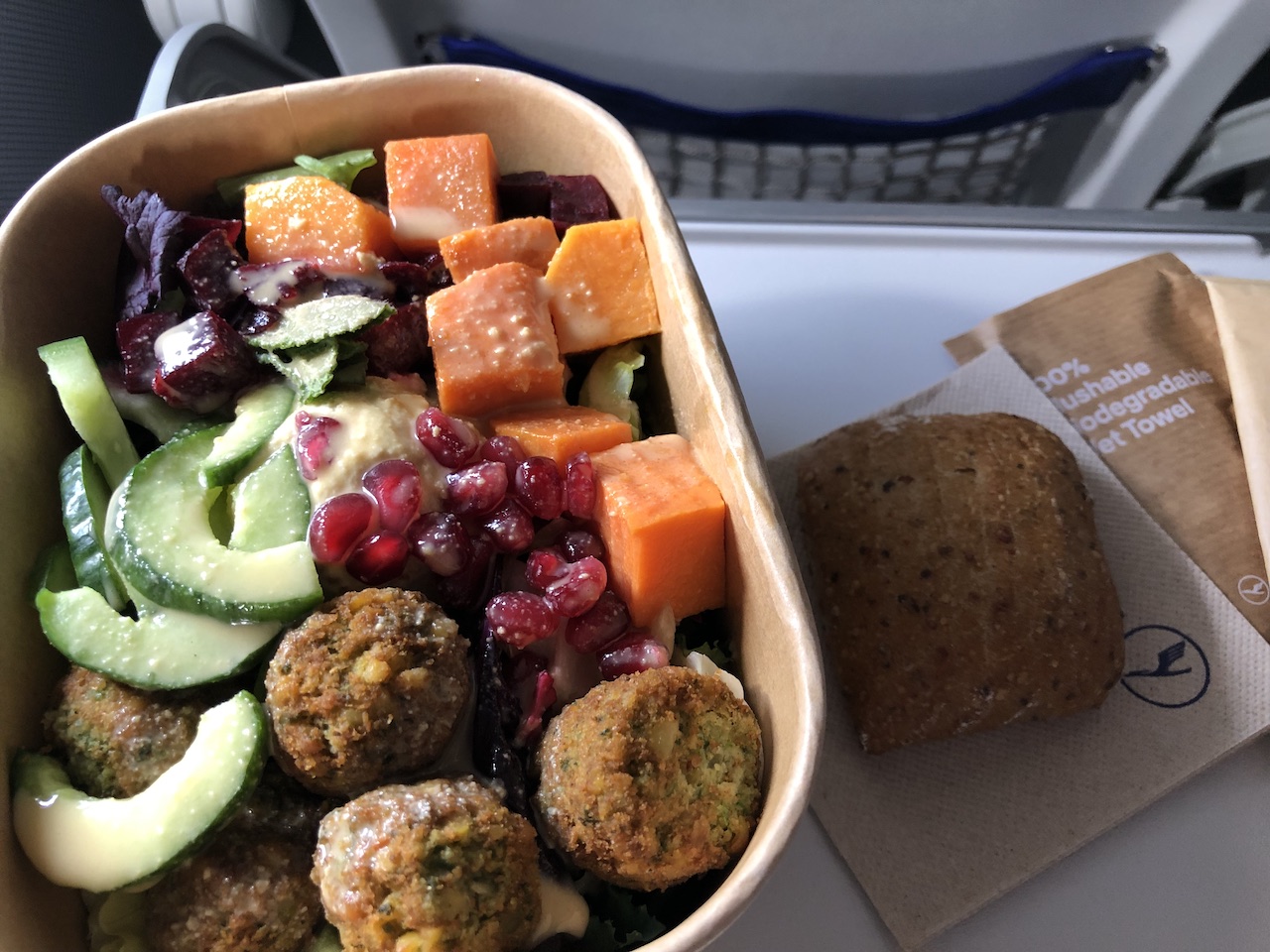 7. In Economy wäre mir das Bezahlessen egal. Da kann ich auch am Flughafen oder davor was holen. In Business Class ist man da ja eher angewiesen da die Zeit fehlt. Aber „Tasting Heimat“ ist jetzt auch nichts was man vermisst. Da war das Catering davor besser. Da bieten AF und BA auf Kurzstrecke wesentlich besseres Catering