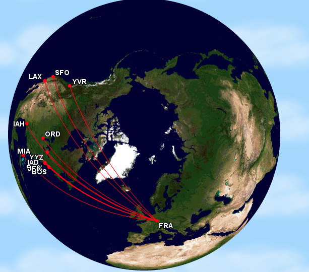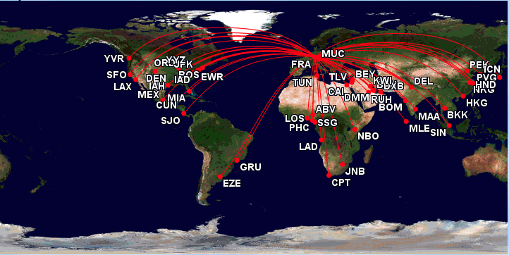 Im November wird Lufthansa ab Frankfurt 42 Intercontinentale Strecken bedienen. Hierbei muss man allerdings auf die Frequenzen achten, denn diese sind teilweise noch recht gering. Das Streckennetz ab Frankfurt nimmt aber wieder an gestallt an und führ auf alle Kontinente, außer nach Australien und in die Antarktis.