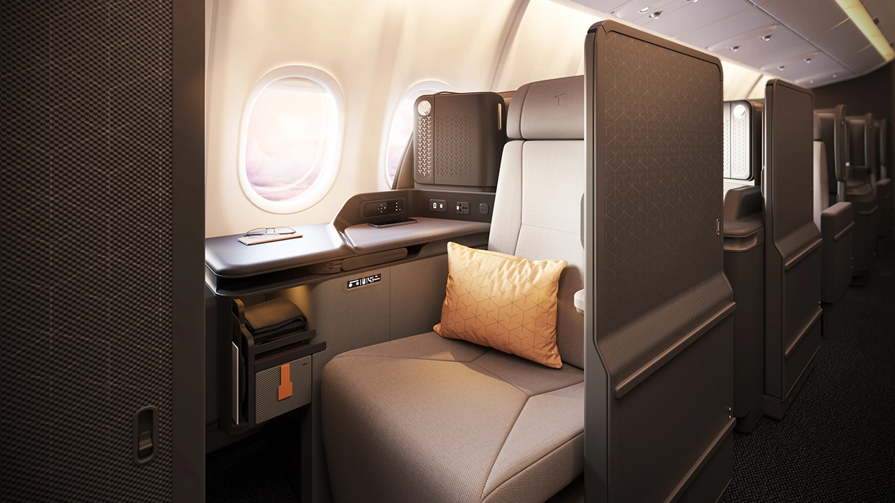 💺 Neue Business Class: 1-2-1-Konfiguration mit Thompson Vantage XL, Start der Umrüstung ab Winter 2025/2026.