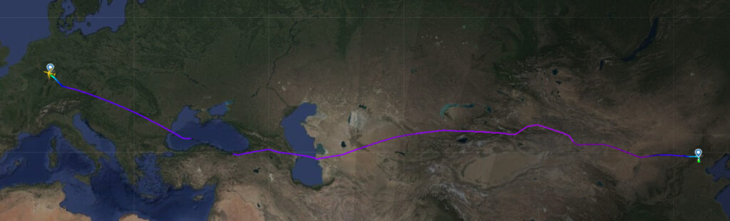 Screenshot: Flightradar24.comDiese Umwege wirken sich stark auf die Margen aus und macht Flüge nach China für Airlines aus Europa unattraktiv.