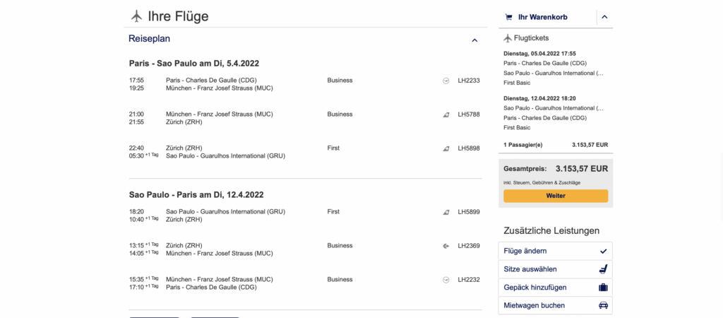 Solche meilenoptimierten Routings lassen sich übrigens einfach über die Lufthansa Webseite buchen und werden direkt angeboten.