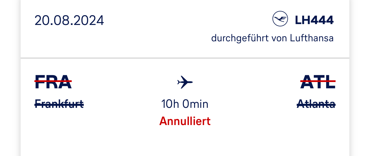 Bei Flightradar kann man feststellen, dass die genannten Verbindungen bereits in den letzten Tagen vereinzelt annulliert wurden. Demnach ist die LH 404 nach New York JFK schon am 15. August ausgefallen. Einen Tag später war neben der LH 418 nach Washington auch die LH 444 nach Atlanta betroffen.