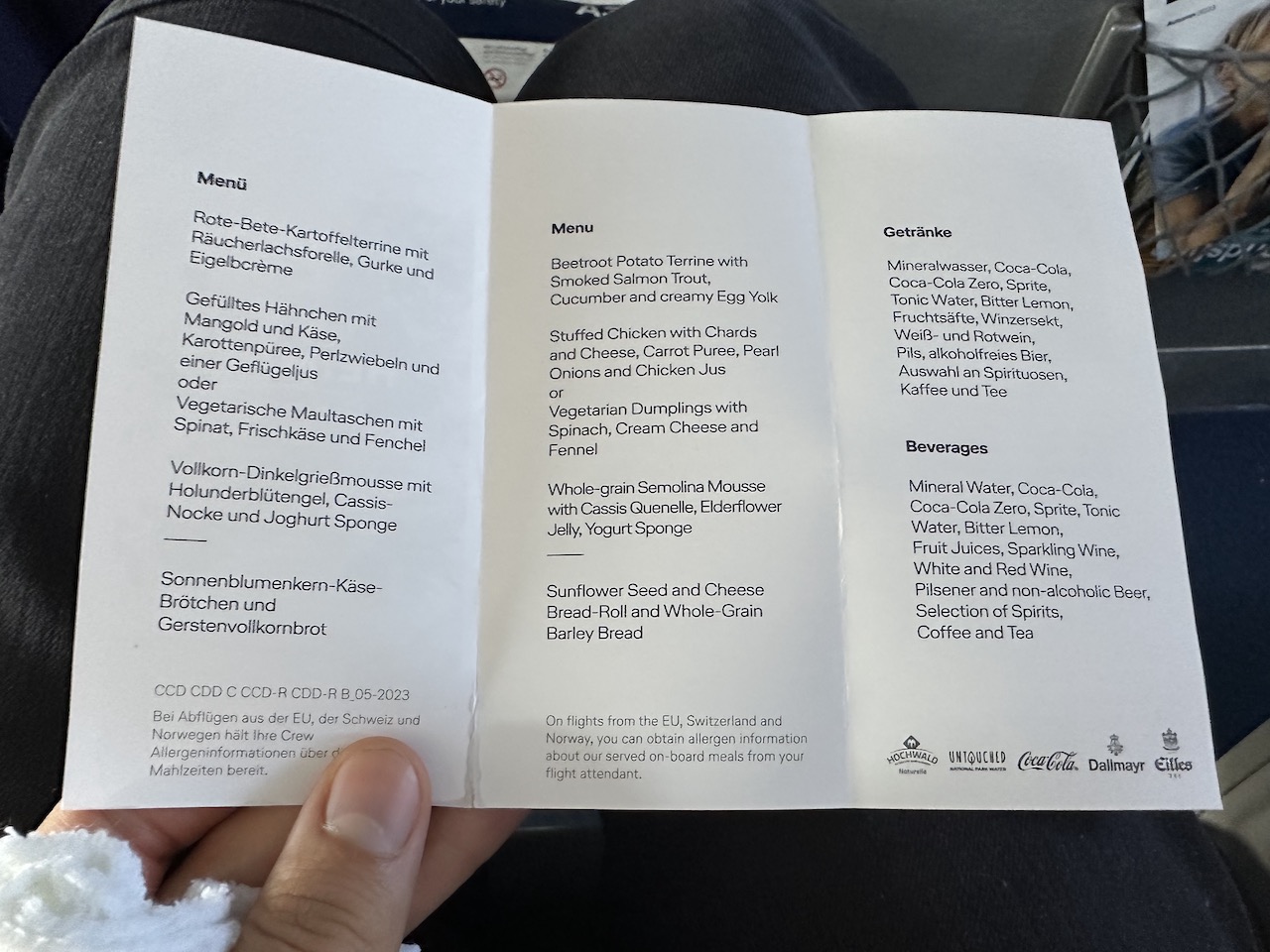 Witzig – da scheint noch jemand Freude an den über Monate hinweg immer gleichen Miniportionen zu haben, die LH als vegane Option austeilt. Das lederzähe Brötchen nicht zu vergessen. Selbst bei der LOT speist es sich besser.