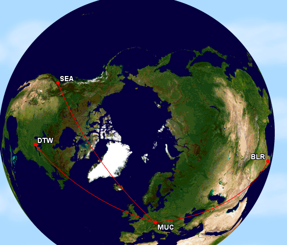 • Bangalore 1:45AM nach München 7.30AM