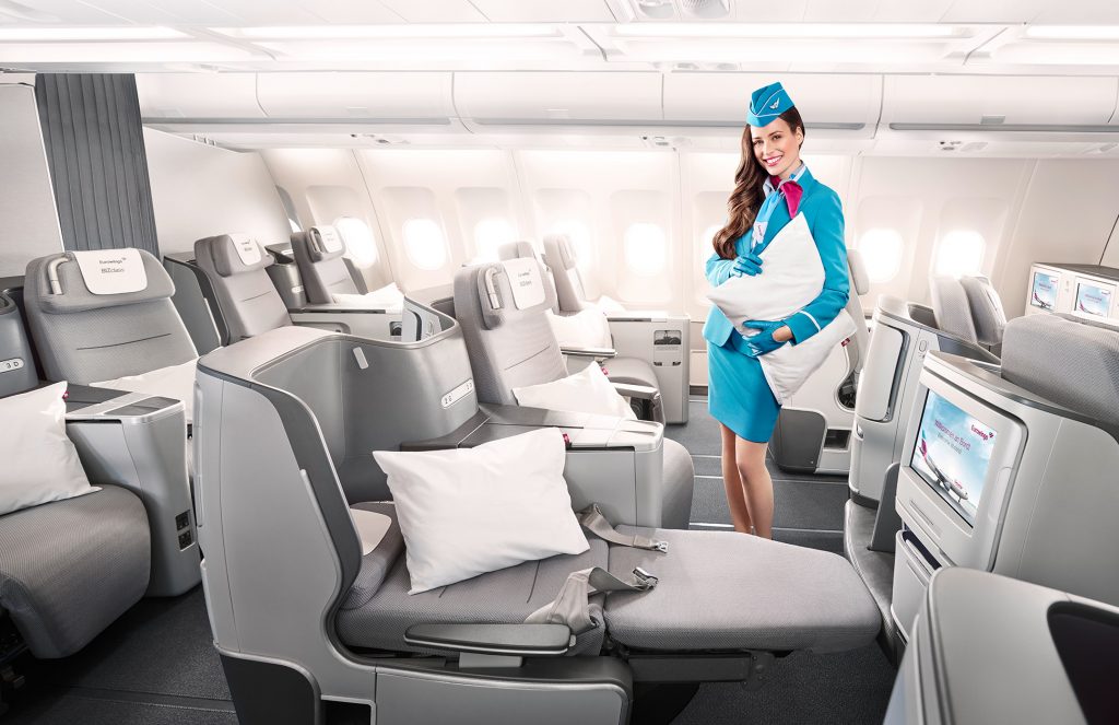 Damit wird Eurowings auf den USA Strecken ab Frankfurt und München ein mit Lufthansa vergleichbares Kabinenprodukt in allen Klassen haben. Nachdem die Eurowings Flüge auch von Lufthansa vermarktet werden, ist dies sicher auch unumgänglich.