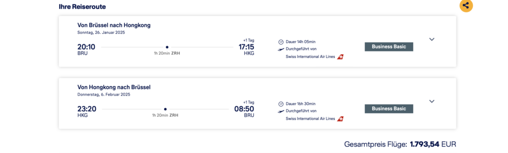 Lufthansa und SWISS Business Class von Brüssel nach Hongkong ab 1.793 Euro
