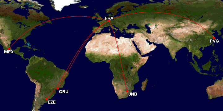 Zum Einsatz kommen hauptsächlich die aus München „ausgeliehenen“ Airbus A350 sowie einige A330 und A340. In keinem der Jets ist derzeit eine First Class installiert. Der einzige aktive Flugzeugtyp mit der Luxusklasse ist die Boeing 747-8. Nur einige Jumbos sind derzeit unterwegs und bedienen Ziele wie Johannesburg, Sao Paulo, Mexico-City, Shanghai und Buenos Aires. Die argentinische Hauptstadt steht in dieser Woche mit nur einer wöchentlichen Frequenz im Flugplan.