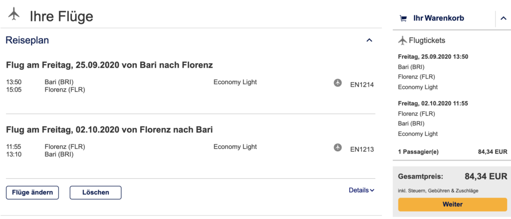 Strecken wie Florenz-Bari oder Palermo, Catania und Cagliari haben keine Codeshare-Flugnummer mit Lufthansa. Diese Routen werden auch in Zukunft keine LH-Nummern haben, aber der Vertrieb findet ab sofort auch auf der Seite der Konzernmutter statt. So sind die Flüge – zu teilweise sehr günstigen Konditionen – nun auch auf Lufthansa.com zu finden.
