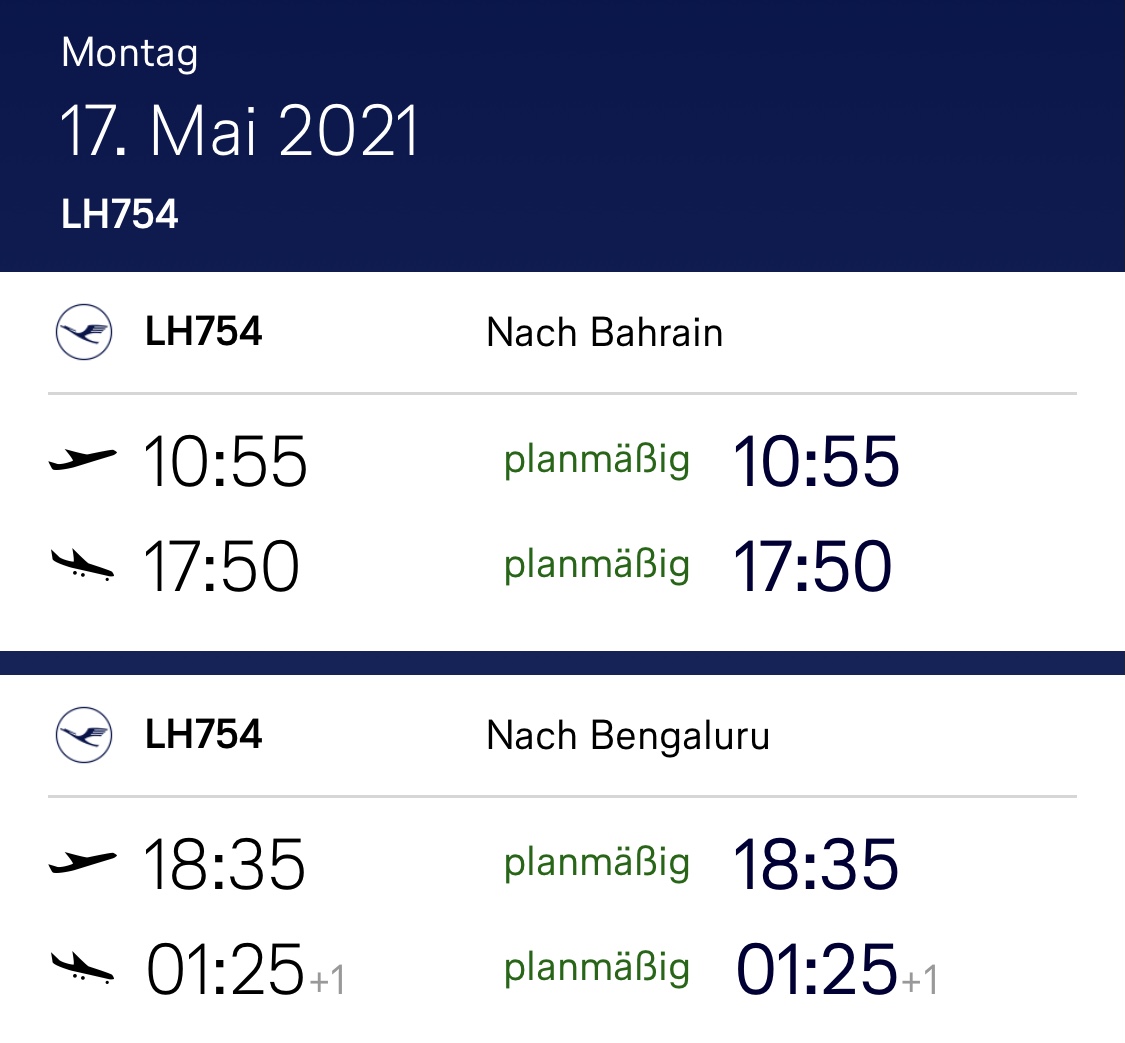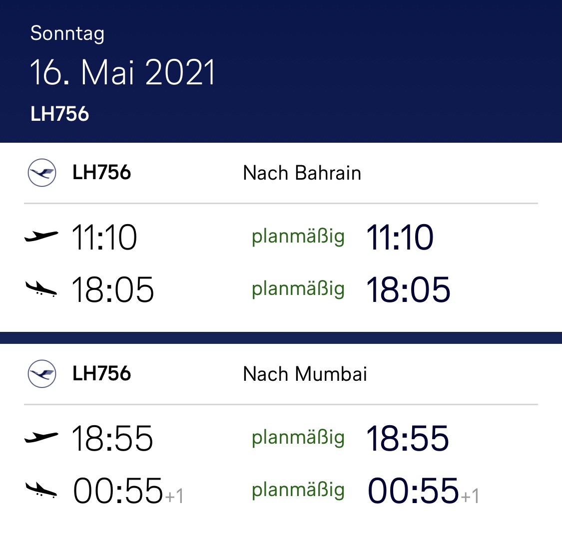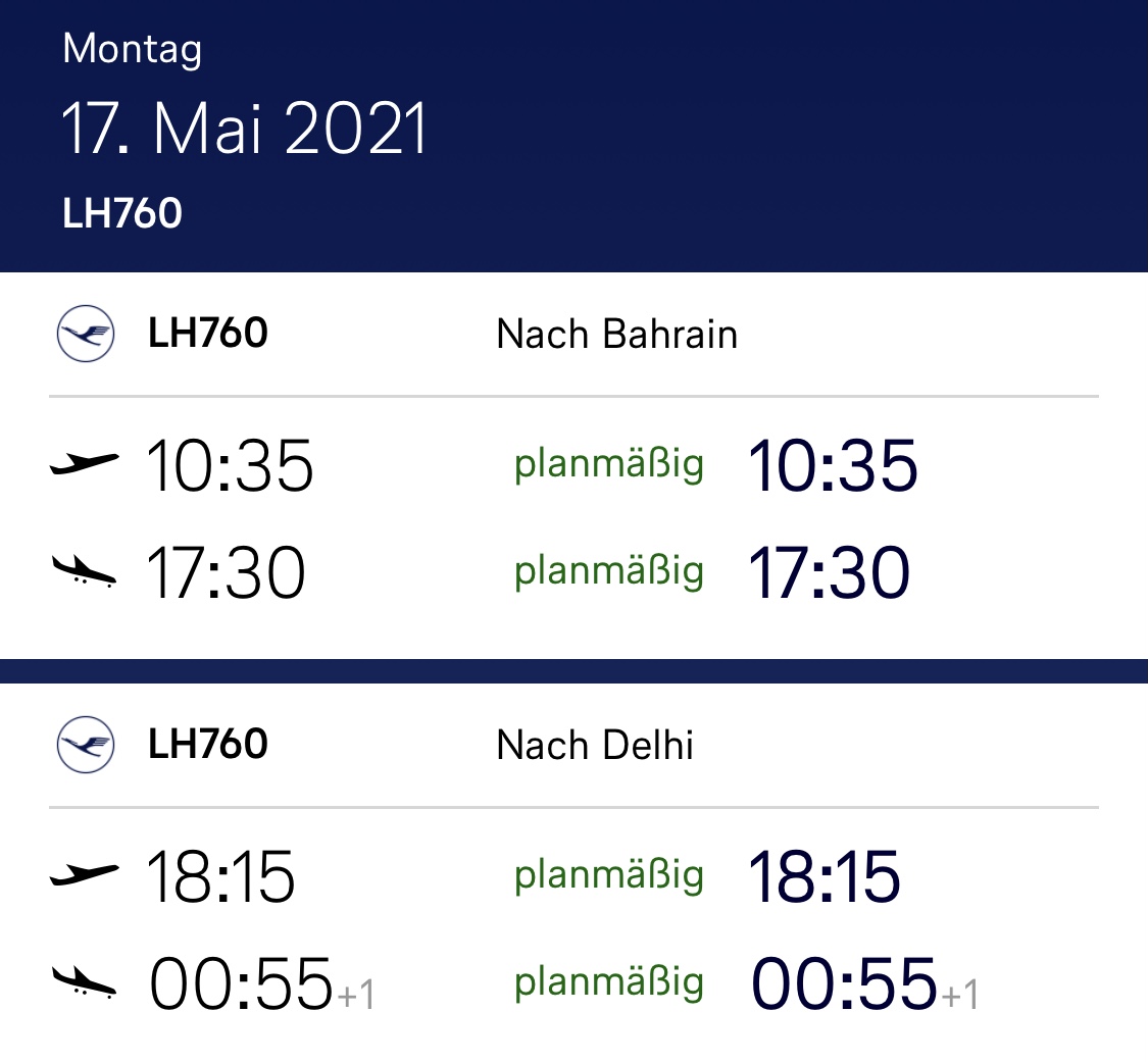Mit Bahrain wurde nun eine neue Lösung gefunden, schon ab Sonntag erfolgt die Abwicklung der temporären Indien-Operation über den Flughafen im Persischen Golf. Im Flugstatus der Airline kann man dies bereits erkennen, die drei Destinationen sind somit wieder im Streckennetz der Gesellschaft.