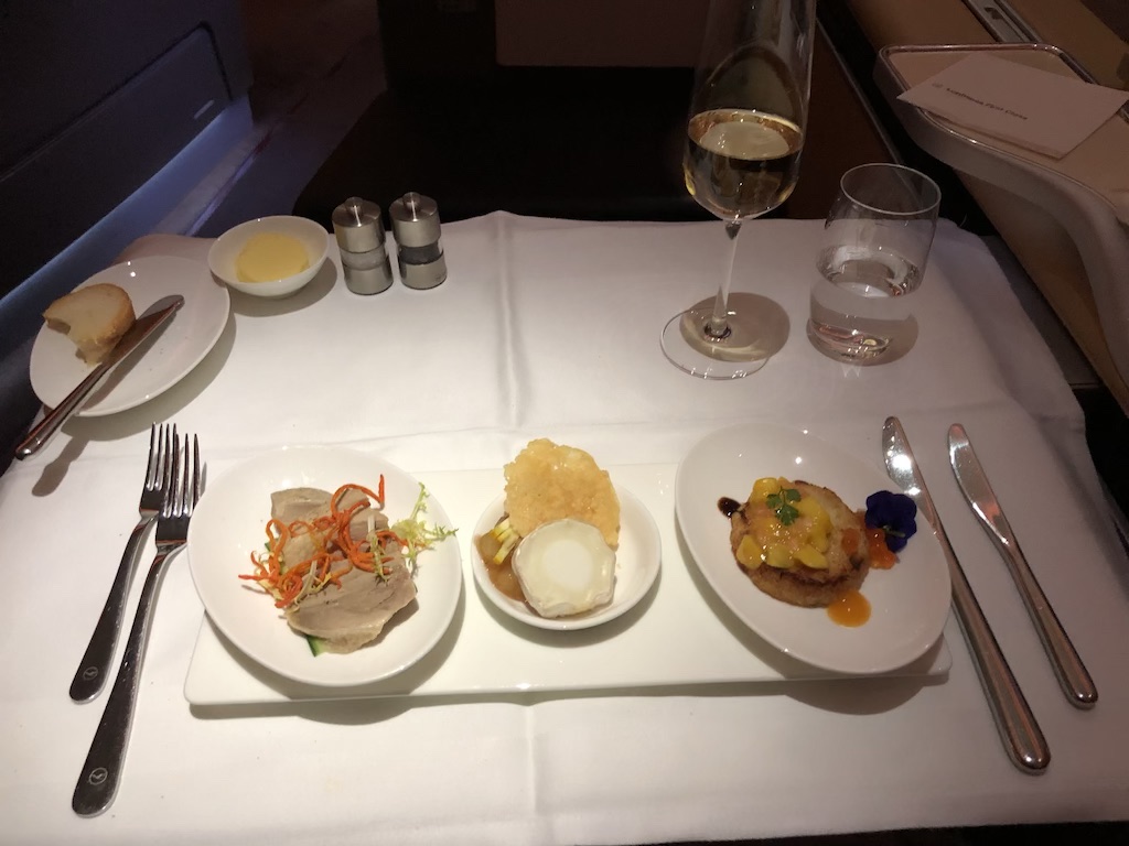 3. In der Business Klasse kann man also getrost seine Maske nach dem Start in der Tasche lassen zum Essen und trinken. Und wenn man sich Zeit lässt, isst man halt etwas länger und schon landet man auch wieder. Verrückt, wiev ein Virus am Vorhang halt macht.