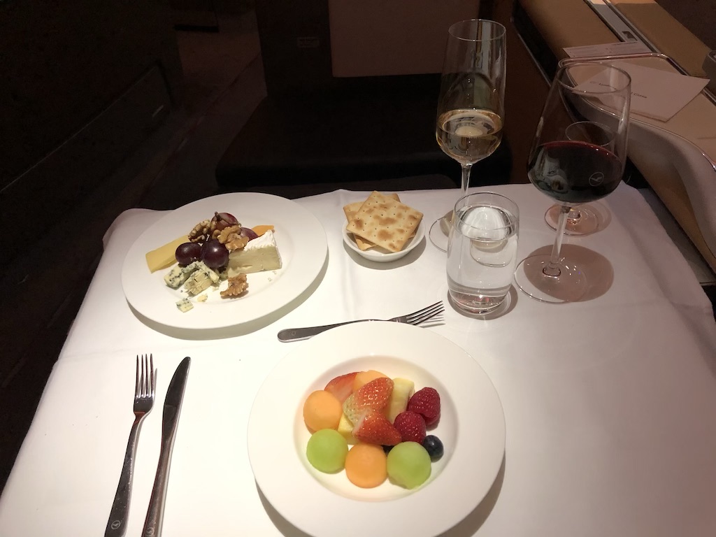 Hier wird Lufthansa weiterhin auf allen Flügen das volle Getränkeangebot und einen Snack oder eine vollständige Malzeit, je nach Streckenlänge, anbieten. Auch während der letzten drei Monate hat Lufthansa in der Business Class an dem Essen festgehalten, lediglich das Getränkeangebot wurde gekürzt und es gab nur Wasser. Nachdem es in den letzten Wochen schon Kaffee und Tee gab, ist nun hier der komplette Getränkeservice zurück.
