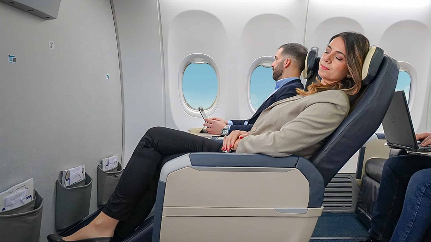 Zum Einsatz kommt dabei die Boeing 737 MAX 8 mit der Registrierung LX-LBL. Sie verfügt über 168 Sitze, darunter 12 Business-Class-Plätze, die in einer 2-2-Konfiguration mit einem vergleichsweise großzügigen Neigungswinkel angeordnet sind. Damit bietet Luxair auf der langen Mittelstrecke deutlich mehr Komfort als in der üblichen europäischen Business Class, wo die Fluggäste nur von einem freien Mittelsitz profitieren können.