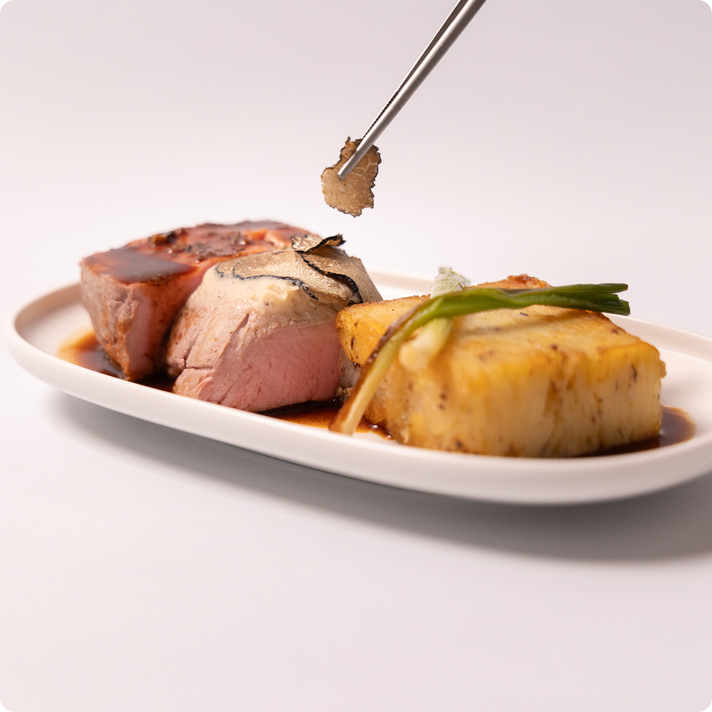 Zum Auftakt serviert Luxair mariniertes Krabbenfleisch, als Hauptgang stehen zwei Varianten zur Wahl: zartes Kalbsfilet mit frischem Trüffel sowie ein cremiges „Célerisotto“ mit jungem Spinat und Trüffelspänen. Im Angebot steht auch Kaviar aus dem Hause Kaviari. Die Delikatesse haben sonst nur die großen Langstreckenlinien in der First Class, wobei sowohl Qatar Airways als auch THAI den Kaviar auf ausgewählten Strecken ebenfalls in der Business Class bieten.