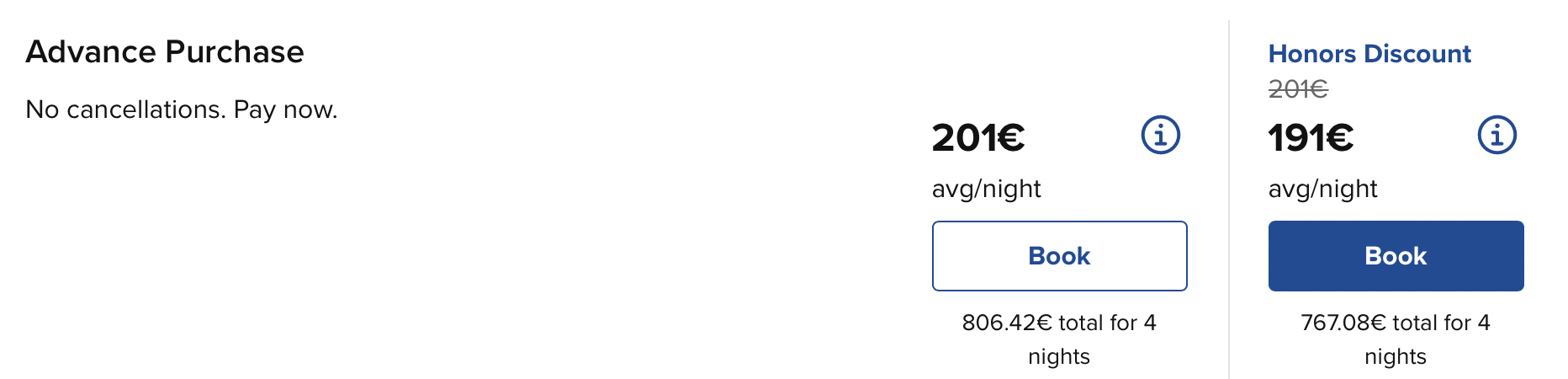 - Günstigster Preis auf Hilton.com (nicht stornierbar, ohne Vorteile): 346 Euro pro Nacht