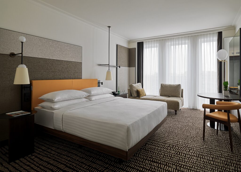 Die 379 modernen Zimmer und Suiten sind wie man es von Marriott kennt schlicht gehalten, bieten aber je nach Stockwerk einen spektakulären Ausblick über die Hauptstadt.
