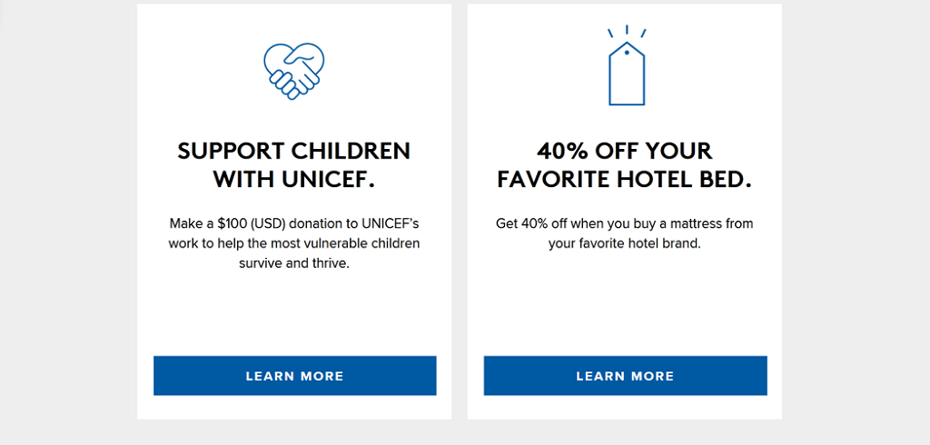 Dann doch lieber 100 USD an UNICEF USA spenden. Sicherlich kann man das auch privat machen und sich damit noch Steuervorteile sichern (die man bei einer Spende über Marriott nicht erhält) oder eine andere Charity wählen, aber hier kann man mit der Auswahl des Benefits einfach Gutes bewirken.