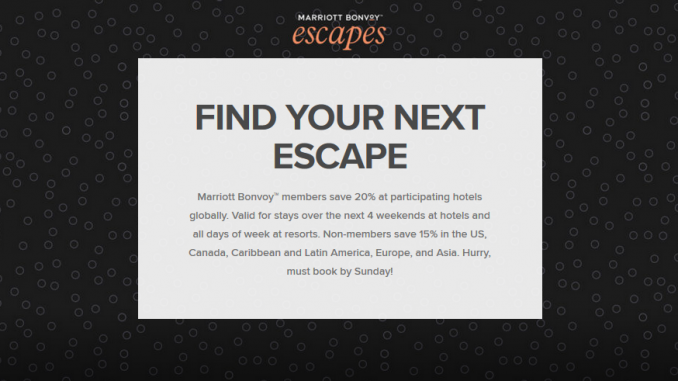 Alle zwei Wochen aktualisiert Marriott die Hotels auf der Marriott Bonvoy Escapes Liste. In diesen Hotels gibt es dann für die folgenden vier Wochen bis zu 25% Rabatt. Die Raten sind leider nicht stornierbar und es scheint ein Zimmerkontingent zu geben, d.h. die Rate bleibt nicht zwingend über die ganze Promozeit verfügbar.
