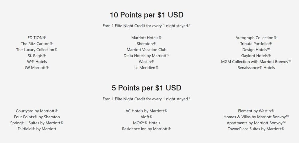 Daher hat sich Marriott überlegt, dass es die traditionellen 10 Punkte pro US-Dollar auf die Hotelrate in Zukunft in deutlich weniger Marken als heute noch geben wird. Gerade die Marken, die nicht zum „Full Service“-Spektrum der Marken gehören, werden zukünftig nur noch 5 Punkte pro US-Dollar gutschreiben.