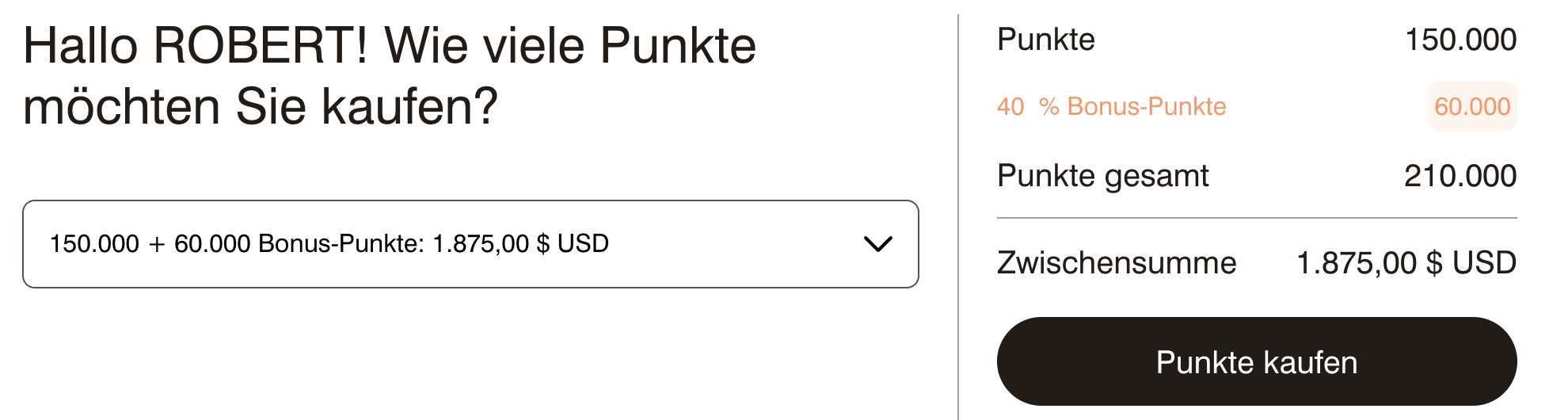 - Wählt die Menge an Punkten, die Ihr gerne kaufen möchtet.