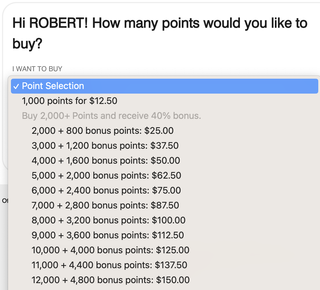 - Wählt die Menge an Punkten, die Ihr gerne kaufen möchtet.