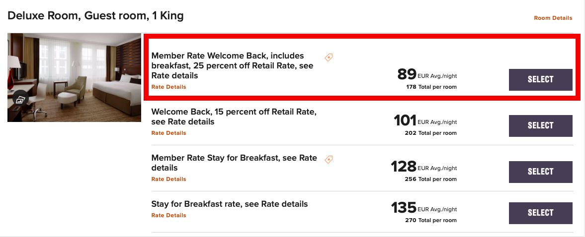 Mit einem Marriott Gold Status profitiert Ihr auch bei diesem Angebot von einem kostenlosen Zimmer Upgrade, späteren Check-Out und vielem mehr. Gerade wenn Ihr die Welcome Back Angebote bucht, dürft Ihr auf ein mehrfach Upgrade hoffen.