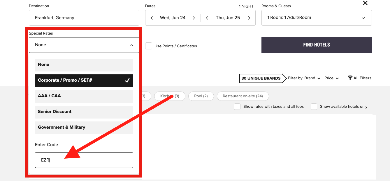 Sollte die Welcome Back Rate nicht direkt angezeigt werden, dann verwendet den SET Code: EZR