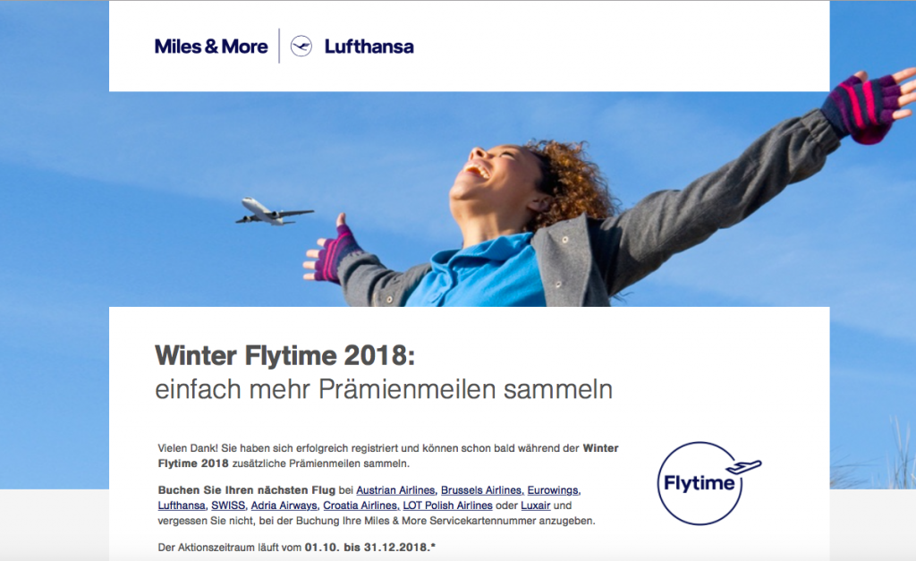 In dieser Email ist ein individueller Link, mit dem Ihr Euch für die Miles & More Winter Flytime Promotion einmalig registrier könnt.