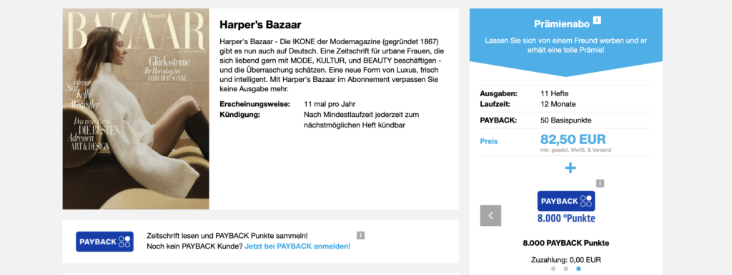 Meilen Top Deal: 8.000 Payback Punkte/ Bis zu 10.400 Miles&More Meilen für 82 Euro mit einem Harper’s Bazaar Abo | Mehr Miles&More Meilen sammeln?