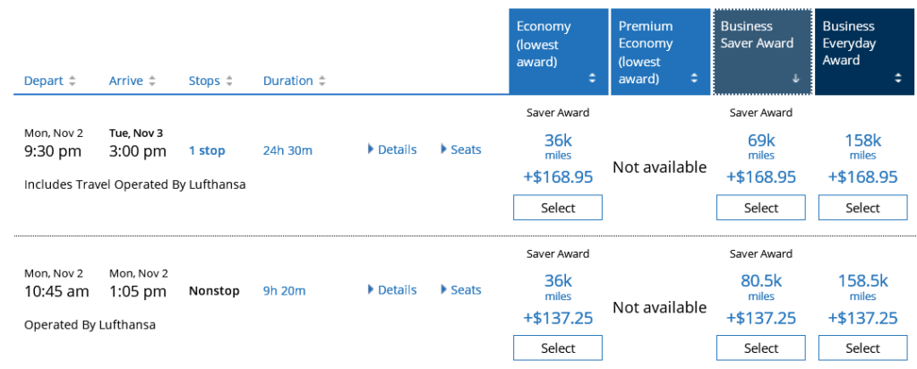 Früher kostete ein Business Class Flug von Deutschland in die USA mit Lufthansa 70k Meilen. Im November 2019 hat United dann die „Close-in“ Gebühren abgeschafft. Damit musste man keine Strafgebühren mehr zahlen, wenn man einen Prämienflug kurz vor Abflug bucht. Im Gegenzug hat United dann die Meilenwerte ab 30 Tage vor Abflug um 3,5k Meilen angehoben. Meilen statt Cash also. Dann folgte im Jahr 2020 eine pauschale Erhöhung der Meilenkosten für Flüge mit Partnerairlines um 10%. Damit kostete ein Lufthansa Flug von Deutschland in die USA 77k Meilen. Dabei ist der IT von United wohl die neue „Close-in“ Gebühr in Form von Meilen entfallen. Diese hat man jetzt wieder eingepflegt, so dass ein Lufthansa Flug über den Atlantik innerhalb der nächsten 30 Tage jetzt 80,5k Meilen kostet.