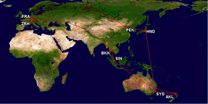 Geplant ist FRA BKK SIN AKL und zurück AKL SIN BKK HND FRA.