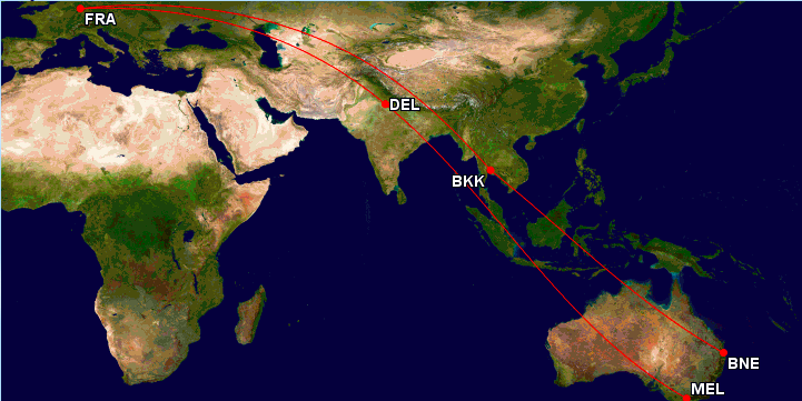 „Geplant ist FRA BKK SIN AKL und zurück AKL SIN BKK HND FRA“