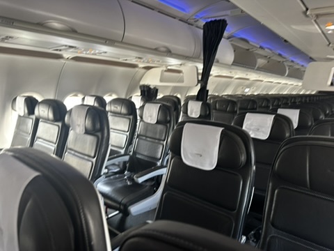 An Bord wurden wir von zwei wirklich gut gelaunten und charmanten Flugbegleitern begrüßt. Der Kapitän kündigte eine Flugzeit von nur 1:10 Stunden an, die Crew war daher nach dem Start entsprechend fix mit dem Service unterwegs. Die Getränkewünsche wurden noch am Boden abgefragt, keine 10 Minuten nach Take off hielten wir schon den Champagner in der Hand.