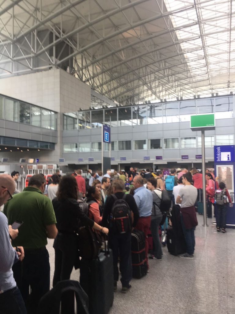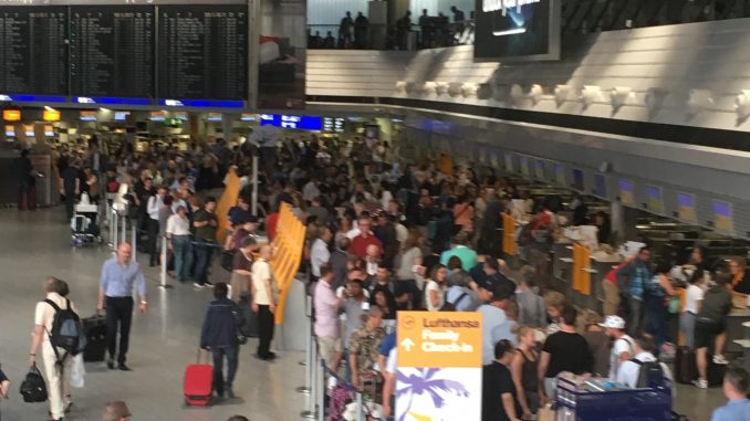 Und genau dieser „SSSS“ Prozess wurde nun deutlich ausgeweitet. So wurde mir von einer Lufthansa Mittarbeiterin  berichtet, dass man normalerweise etwa 2-3 Passagier im Durchschnitt pro Flug in die USA mit einem SSSS hatte, also ungefähr 200 Passagiere am Tag in Frankfurt. Alleine am 19.07. gab es über 2.000 Passagiere, welche für das Secondary Security Screening Selection im Terminal 1 ausgewählt wurden. Also wohl das 10fache. Dies führte wohl zu deutlichen Wartezeiten und Verspätungen.