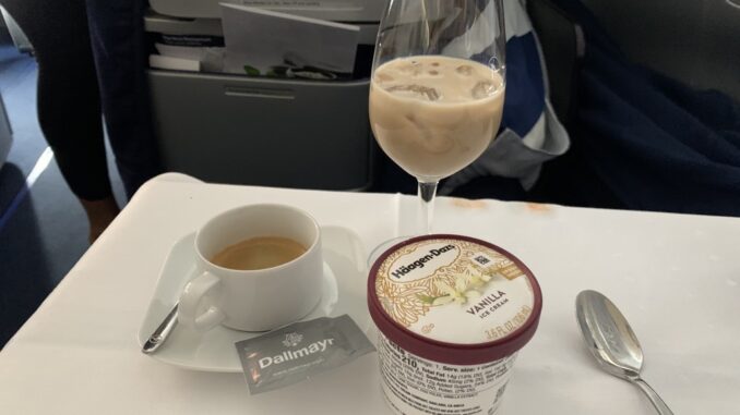 Auf einem Rückflug von der Ostküste ist das sicherlich nicht unbedeutend und ich habe auch durchaus schon direkt nach dem Start nur das Eis mit einem Baileys und Espresso geordert.